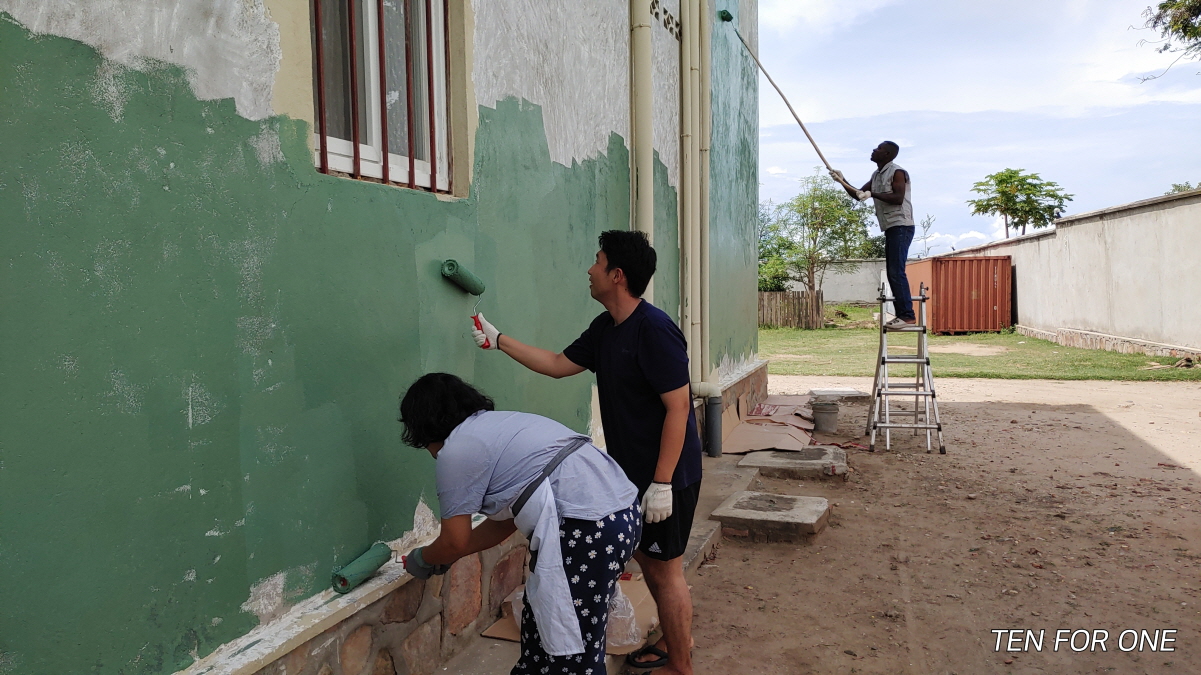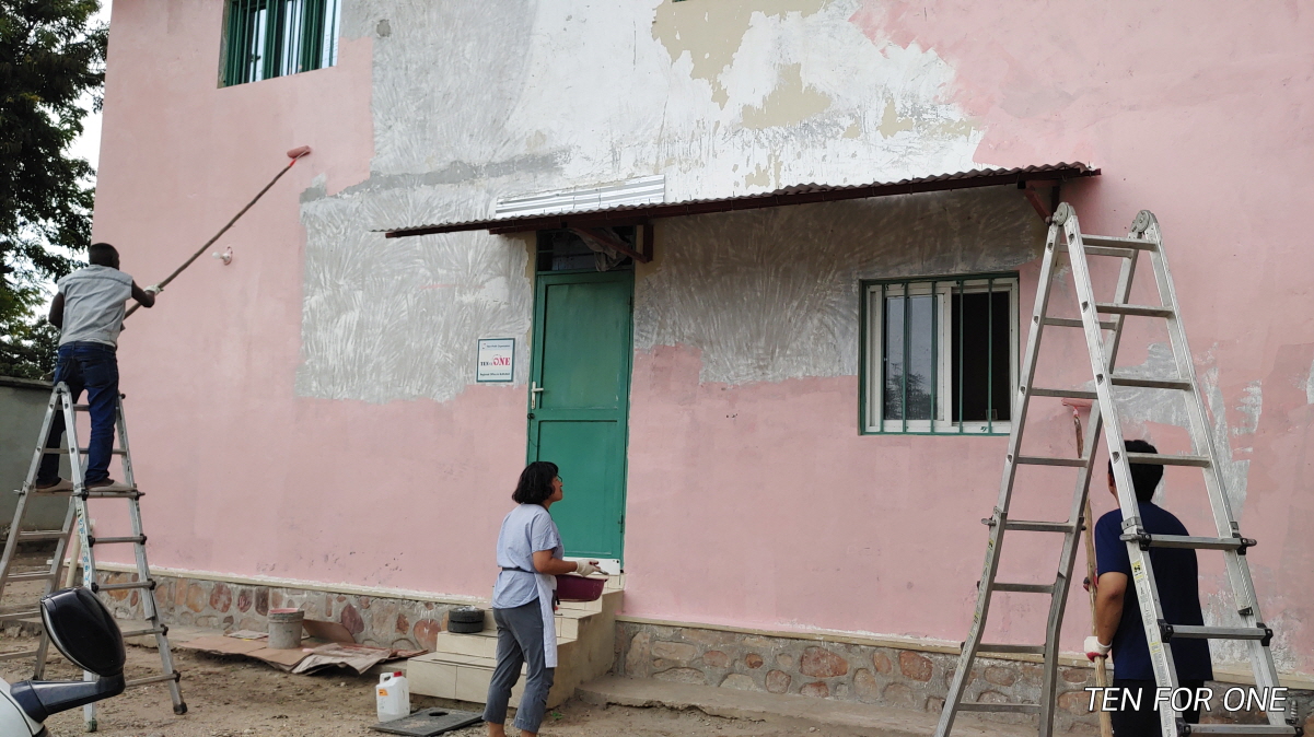 - 가툼바 협동조합센터에 페인트 칠을 했습니다.
